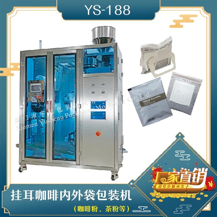 YS-188 掛耳咖啡內(nèi)外袋包裝機(jī)(新框式)特 點(diǎn) 1、適用于咖啡粉、小顆粒狀物料。2、采用特定的掛耳式濾網(wǎng)、三邊封口、直接掛在杯子邊緣,咖啡沖泡效果更好,且袋型美觀,目前國外市場非常流行。3、本機(jī)具有自動完成制袋、計量、充填、封合、分切、計數(shù)、打印批號等功能。4、內(nèi)袋為無紡布掛耳袋,沖泡方便且衛(wèi)生。封口采用先進(jìn)…