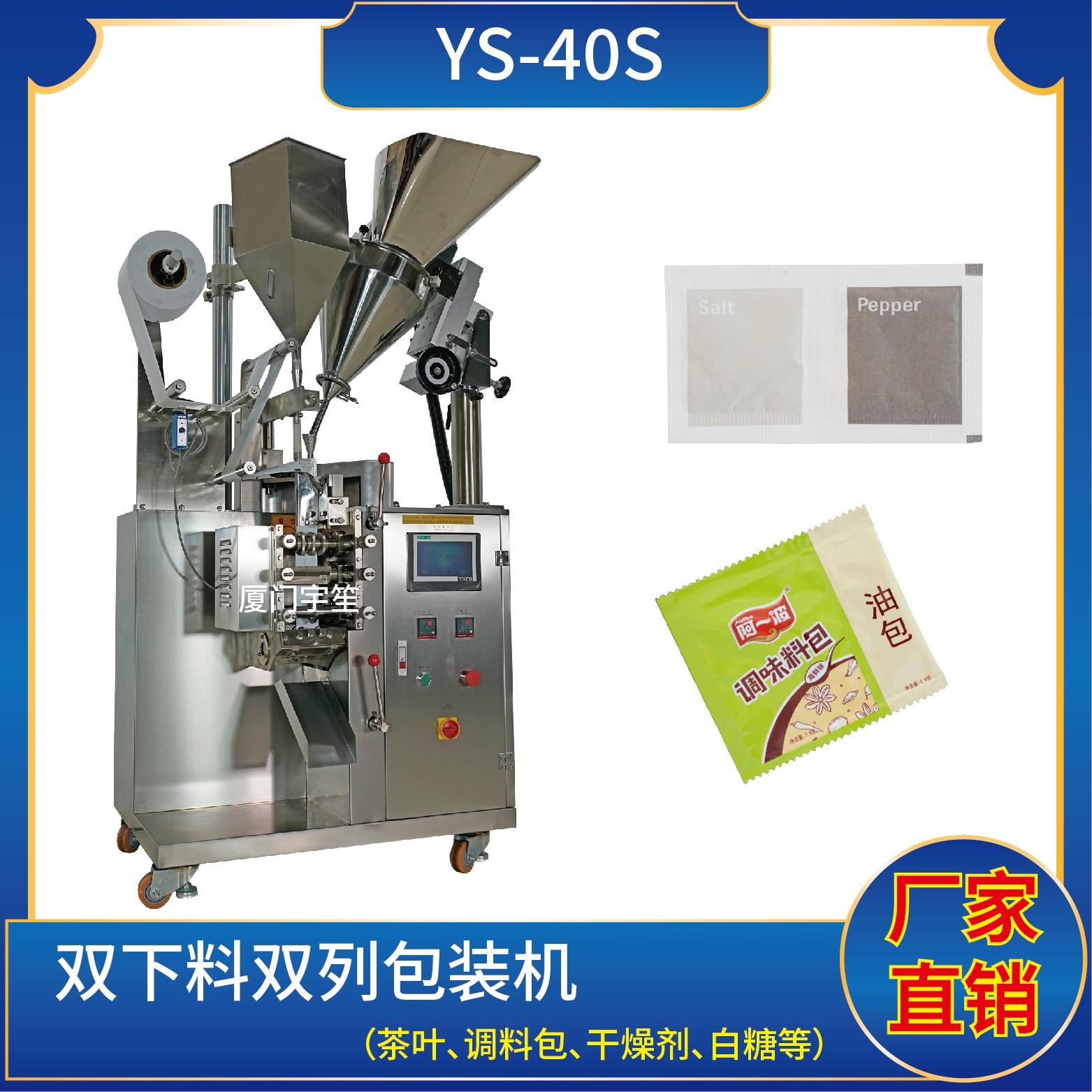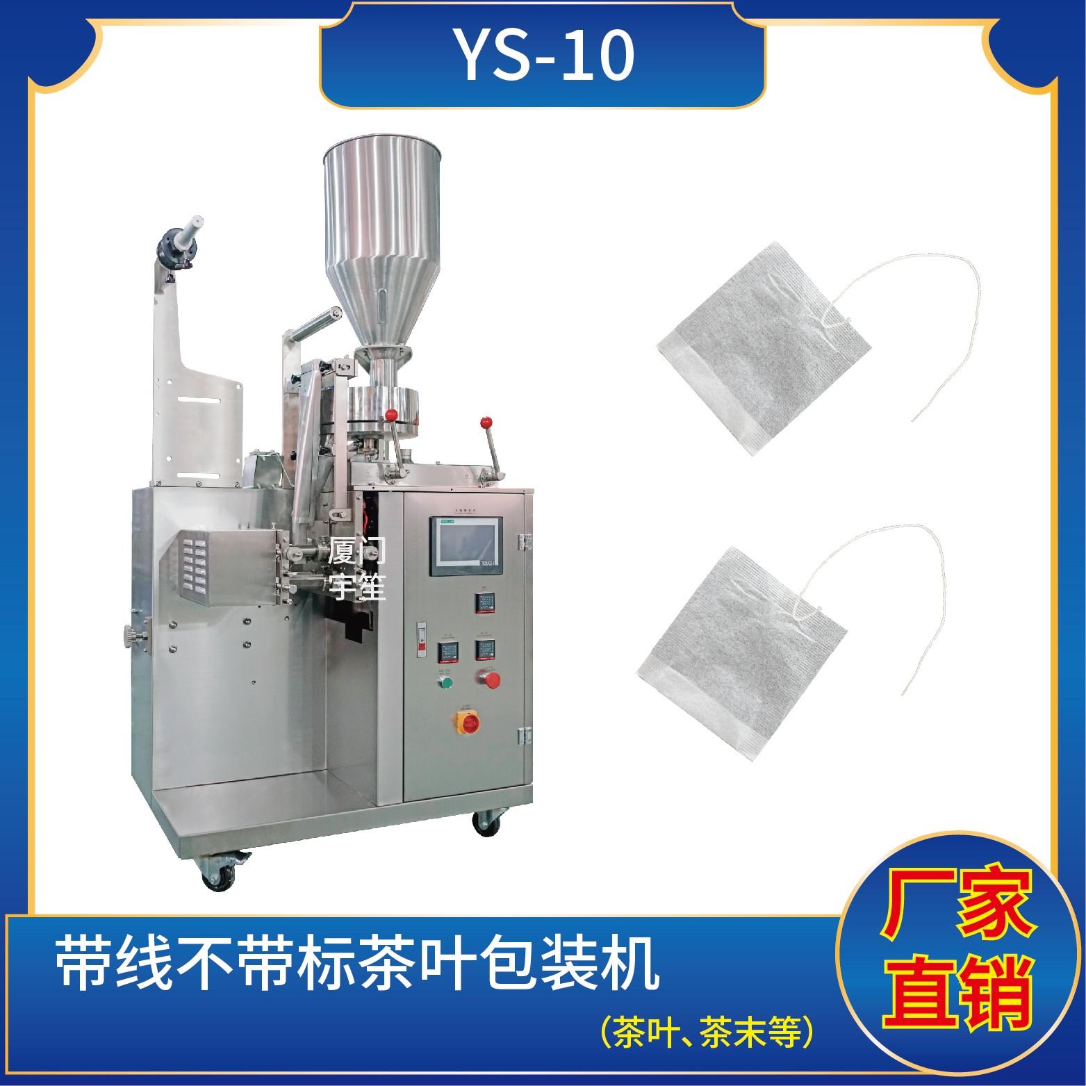 YS-10 新一代 袋泡茶包裝機特 點 1、適用于碎茶、藥茶、咖啡、植物等類似產品的自動包裝。2、包裝袋帶提線,可自動完成制袋、計量、充填、封合、分切及計數等功能。3、包裝材料:茶葉濾紙、棉線。封口方式 :三邊封技術參數計量范圍:1 - 10 g(0.6 ~ 26 ml)制袋尺寸:長 ( L ) : 50 - 80 mm 寬 ( W…