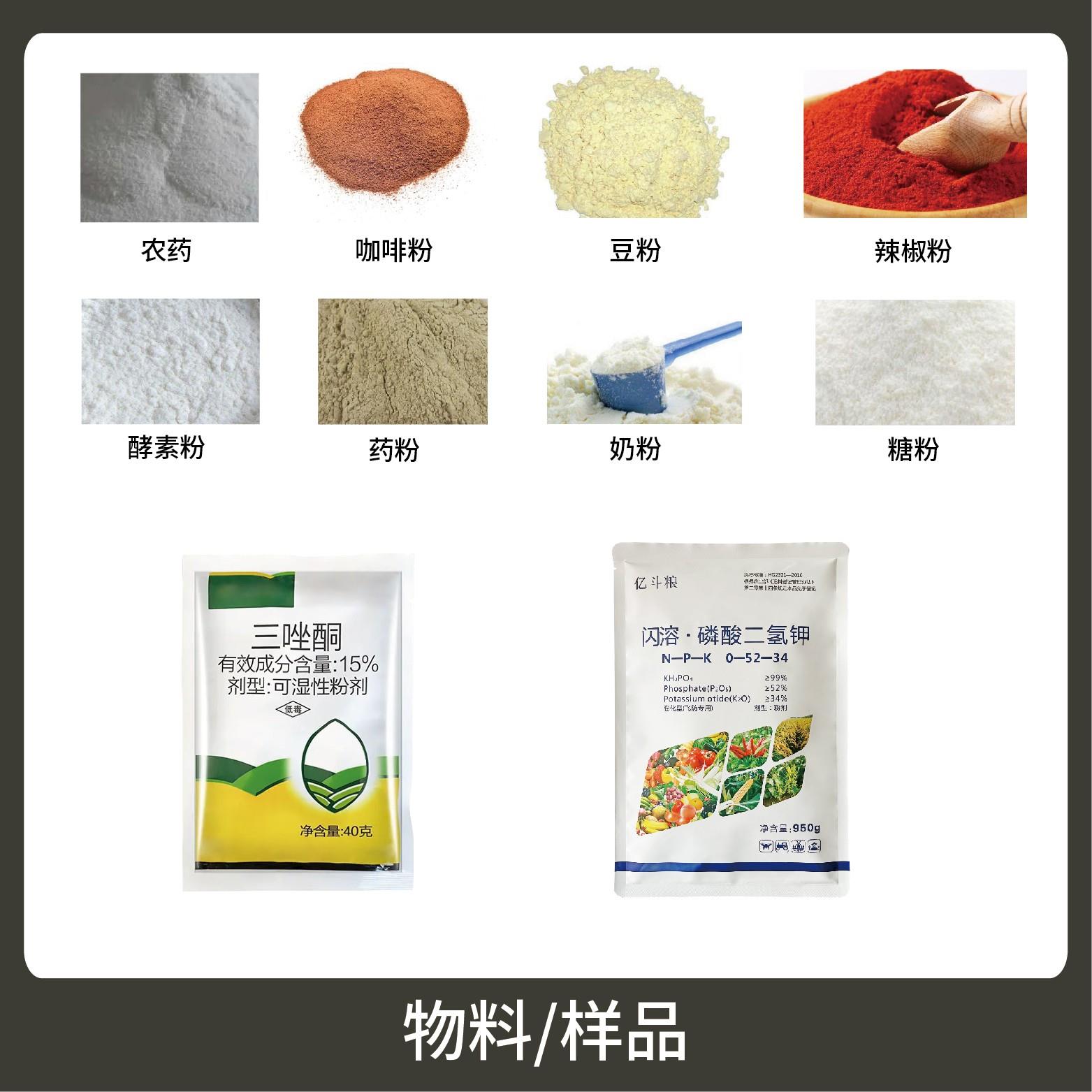 1、適用于食品、醫(yī)藥、化工、化妝品行業(yè)中粉劑等大克重物品的計量包裝,如:面粉、玉米粉、農藥粉等。