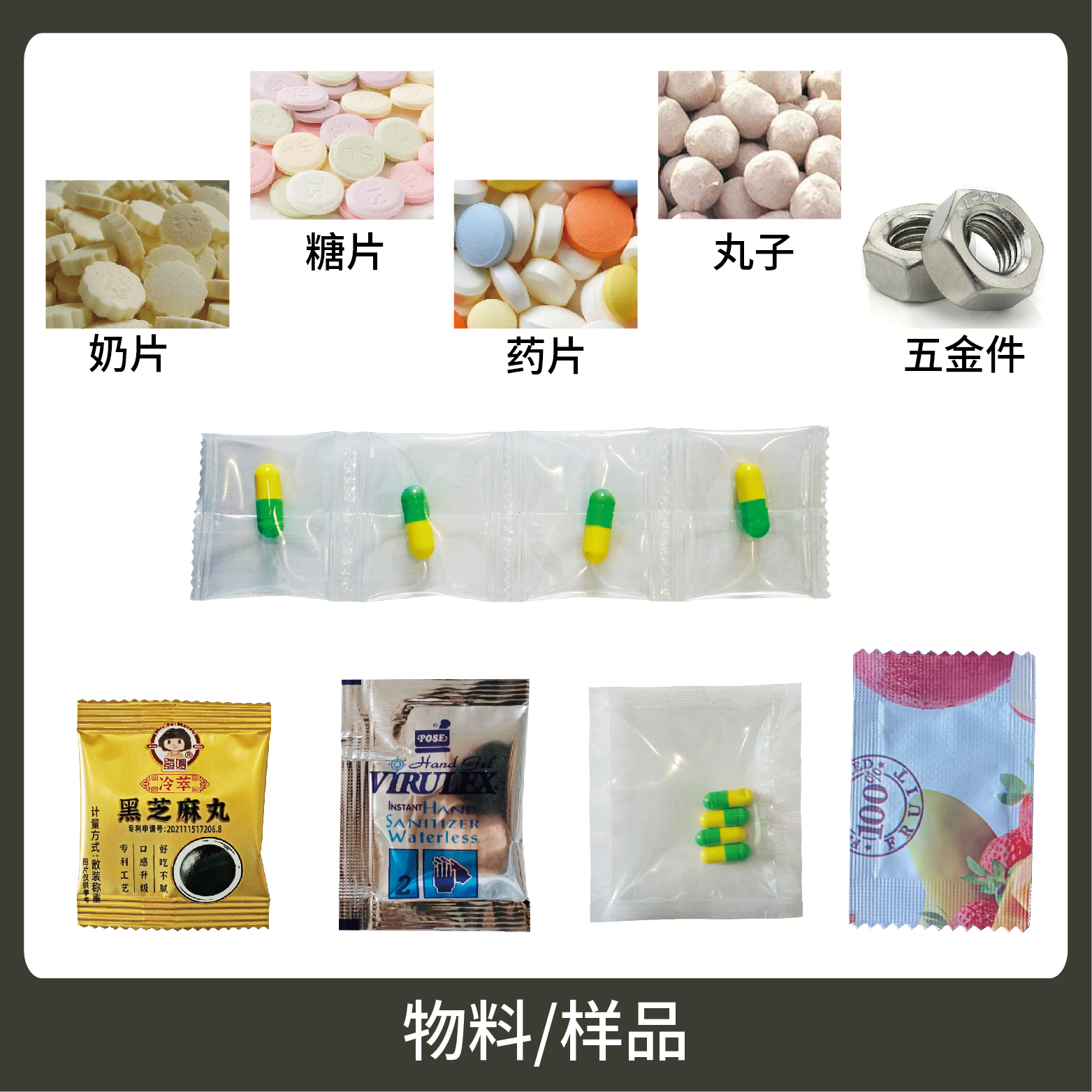 1、適用于食品、醫(yī)藥、化工、化妝品行業(yè)中顆粒物品的計(jì)量包裝,如:藥片、糖果、奶片、丸子、五金件。